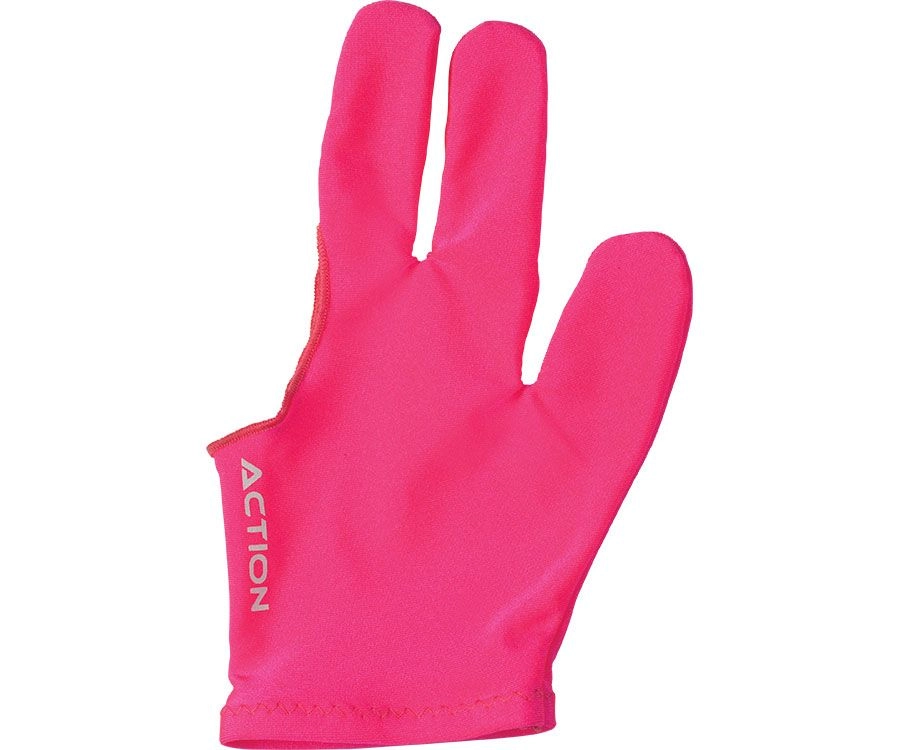 Eliminate the need for messy chalk and improve your game with the one size fits most Action glove. Perfect for left or right-handed players, this billiards glove can help your pool cue shaft slide easier through your bridge hand, thus reducing friction and making your stroke more consistent and accurate. Color: Black and Pink